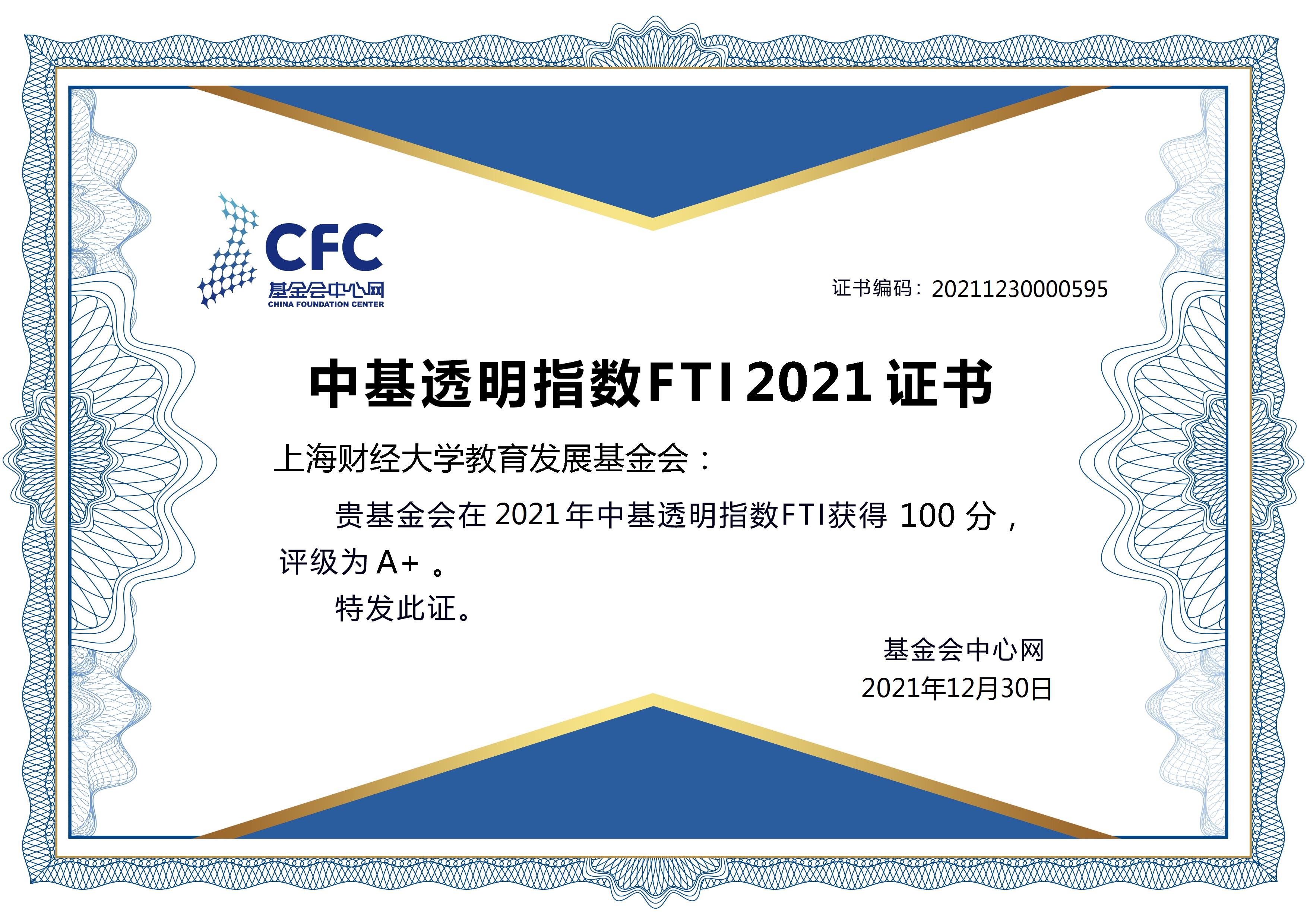 中基透明指数FTI2021证书