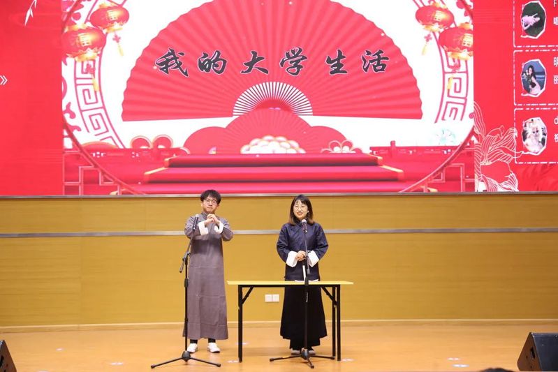 李熙铖、于悦带来相声表演:《我的大学生活》,贴近生活的真实感引起了全场共鸣,幽默的表演也令现场笑声不断。