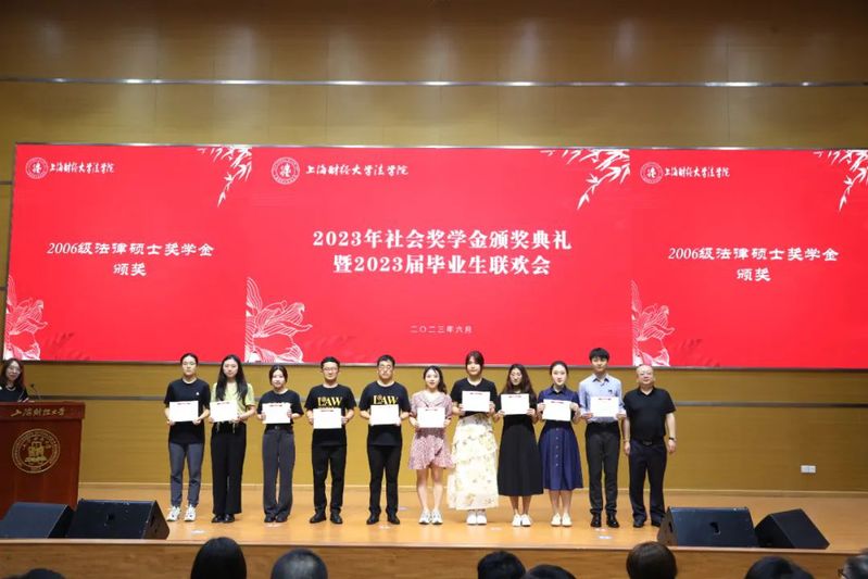 至此,上海财经大学法学院2023年社会奖学金颁奖典礼暨2023届毕业生联欢会圆满结束。祝愿获奖学生继续开拓进取、奋勇争先,不断迈向新的阶段;祝愿毕业学子身披上财法律人荣光,秉持“经济为本、法治为魂”的院训,载着梦想启航。
