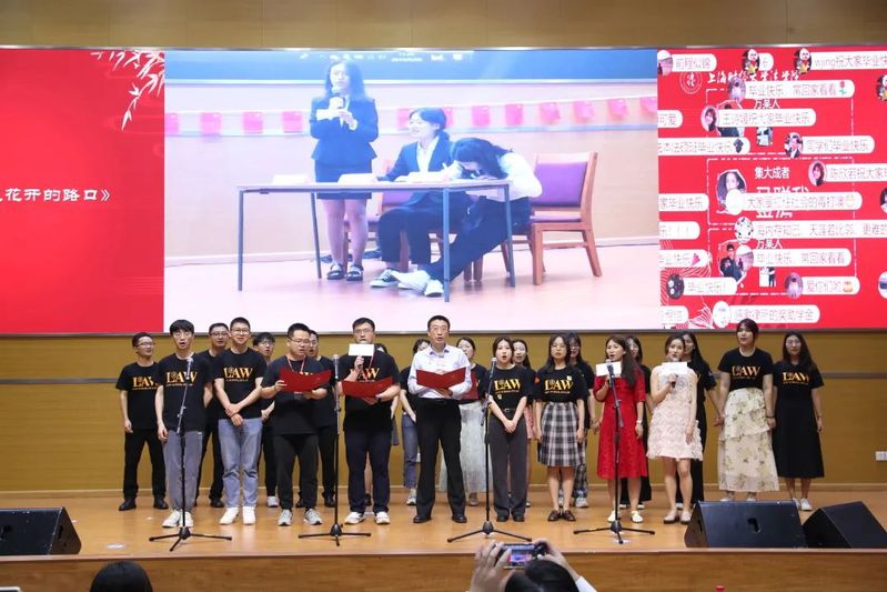 最后,由法学院教师代表与毕业生代表们带来合唱《凤凰花开的路口》,悠扬抒情的歌声伴随着大屏幕上MV的播放,让同学们回想起在上财校园里的难忘经历。