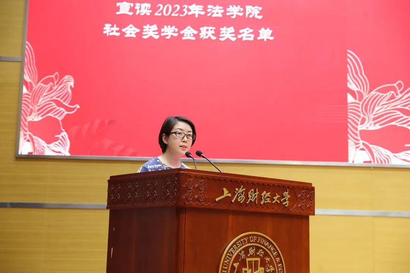 接下来,方卉老师宣读了法学院院设奖学金获奖名单,并对设奖单位表达了感谢,对获奖的同学表示祝贺。2023年法学院共设各类社会奖助学金11项,共计173人获奖。