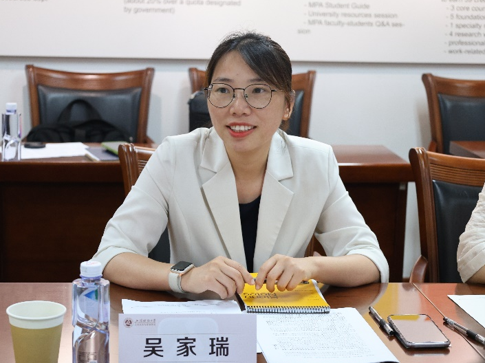 会议伊始,秦文佳书记代表学院致辞。秦书记对两家企业自我校资产评估硕士项目成立以来十余年的持续捐赠表达衷心的感谢。她表示,学院取得的一系列瞩目成就离不开爱心企业的鼎力支持。接着,她就学校人才培养和学生就业展开讨论,在如今AI等产业技术快速变革的背景下,财经类院校的人才培养和学生就业面临新的挑战和机遇,如何超前布局改革措施、培养未来储备人才、切实提高学生竞争力值得深入探讨。她介绍到,学校始终把握时代潮流,在主动服务国家战略、服务地方发展、推动双一流建设方面实施了一系列关键举措。最后,秦书记表示,希望未来校企双方加强合作,在创新人才培养项目上取得新的进展。