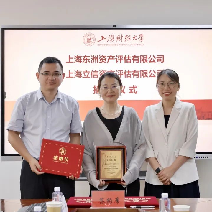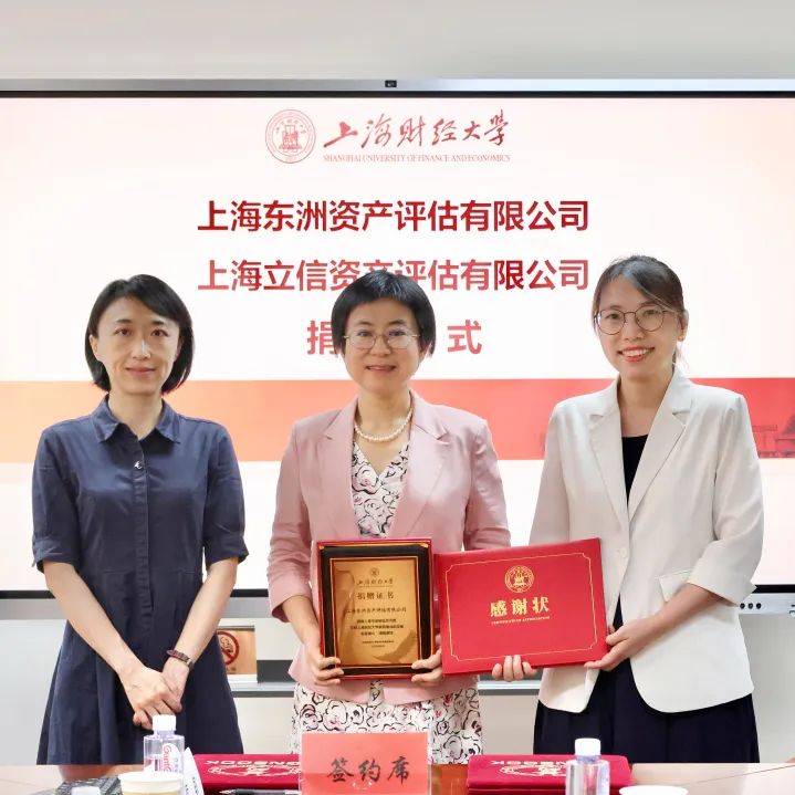 2024年6月21日,上海东洲资产评估有限公司、上海立信资产评估有限公司捐赠我校资产评估硕士项目的签约仪式在上海财经大学公共经济与管理学院202会议室举行。上海东洲资产评估有限公司董事、常务副总裁、党支部书记、我院94级校友梁彬,上海立信资产评估有限公司董事、常务副总裁、党总支书记舒英,上海立信资产评估有限公司人事经理、党支部书记刘珏,上海东洲资产评估有限公司人事主管荣智洁,公共经济与管理学院党委书记秦文佳,副院长宗庆庆,上海财经大学合作发展处副处长、教育发展基金会副秘书长吴家瑞,资产评估硕士中心主任刘伟以及副主任邓旷旷等人参加会议。捐赠签约仪式由刘伟主持。