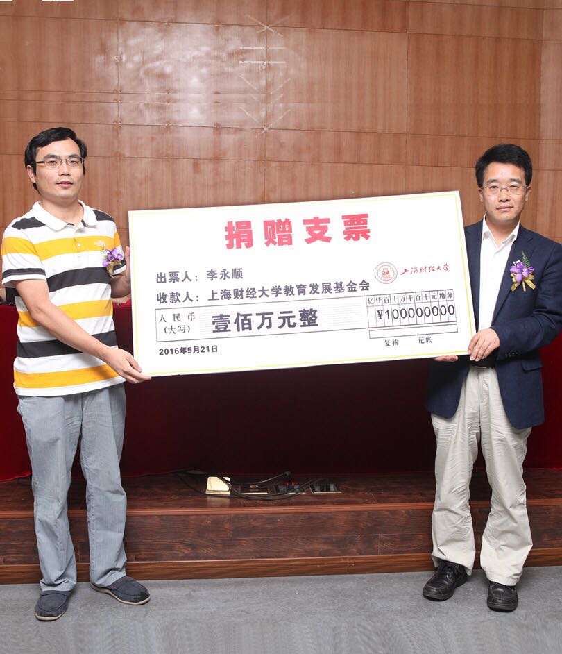李永顺先生正式向上海财经大学教育发展基金会捐赠人民币壹佰万元整