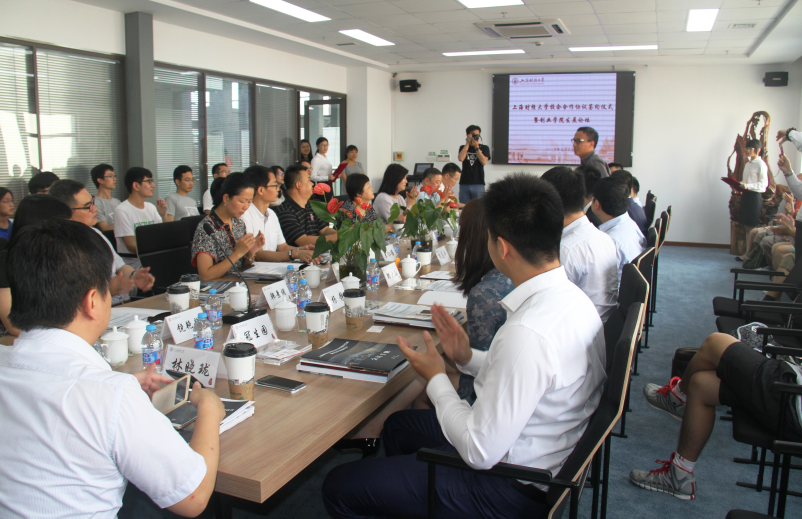上海财经大学校企合作签字仪式暨创业学院发展论坛2016年7月15日在创业中心顺利举行。校长樊丽明教授,优联资本董事长、前阿里巴巴副总裁王孝华,冠生园集团总经理万黎峻,新道科技高级副总裁周前进,上海经佳文化董事长赵丽佳,上海山屿海投资集团总董事长熊雄,解放日报社科教部主任王仁维,兴业全球基金市场部总监郭贤珺,民生人寿保险上海分公司总经理罗凯,杨浦科创总经理谢吉华,荷丰投资董事长潘鸿,弘信资本创始人高建明,我校实验中心主任韩景倜,创业学院执行副院长刘志阳,合作发展处副处长王峰,第二期“匡时班”学员等出席活动。