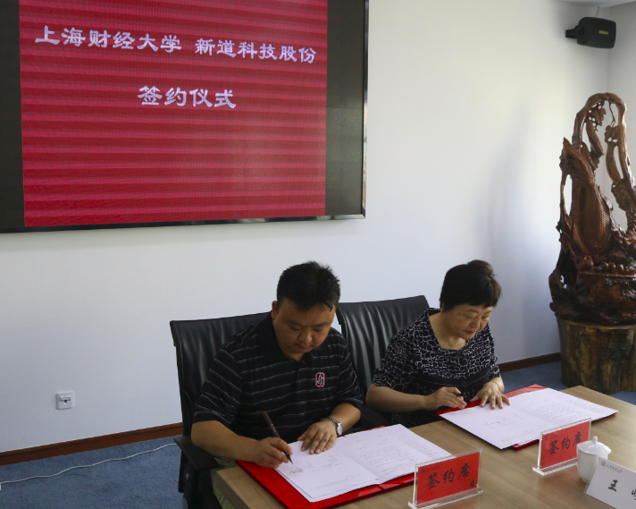 在校企合作签约仪式上,樊校长首先与新道科技高级副总裁周前进签署战略合作协议,双方将共建创新创业实践教学实验室,打造先进的创新创业模拟和实验平台。