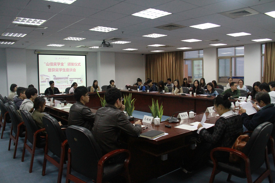 2016年11月17日,正值我校99周年校庆期间,上海财经大学 “山佳奖学金”颁发仪式暨获奖学生座谈会在国定路校区行政大楼三楼会议室召开。我校校董、93届会计专业校友、“山佳奖学金”的捐赠者崔波、副校长方华、合作发展处副处长张彦波、94届财政学专业校友侯晓云、辅导员代表以及获奖同学出席了颁奖仪式。会议由张彦波副处长主持。