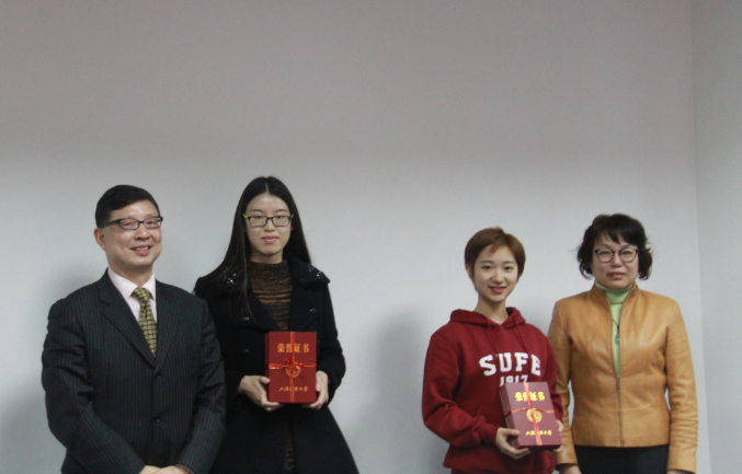 刘兰娟(右一)、贾宁(左一)为获奖学子颁奖