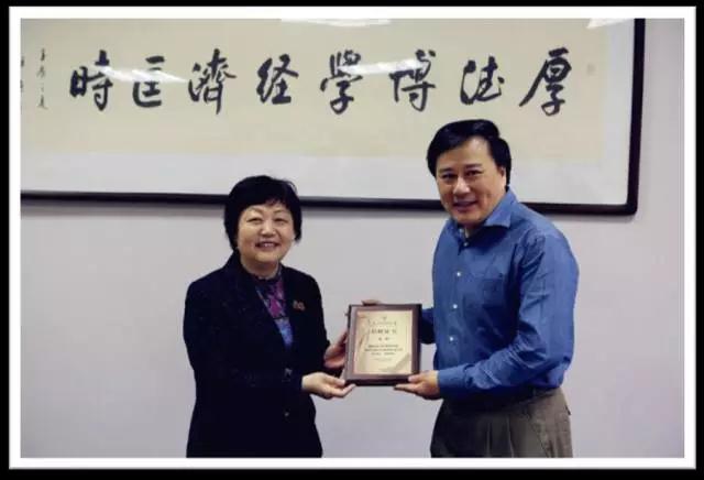 樊丽明教授代表学校向黄明教授颁发捐赠证书,并由衷感谢他对上财学子的关心与爱护。
