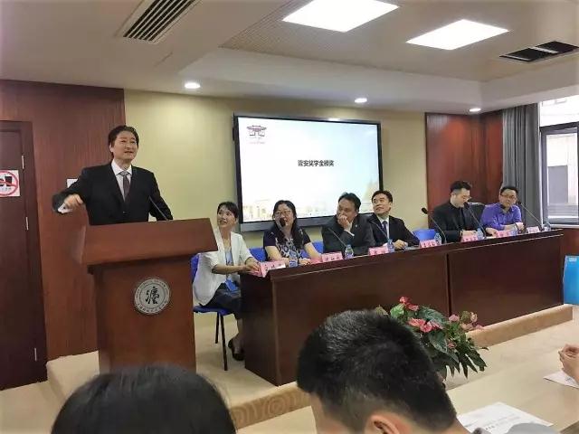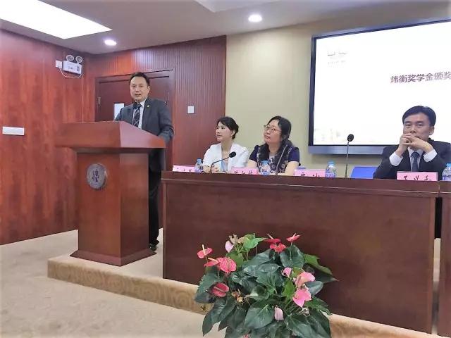 扈斌主任指出财大法学院是独具特色的,法学院的英美法证书班更是独树一帜,北京炜衡(上海)律师事务所设置的奖学金正是针对这些品学兼优的学子,并欢迎他们未来加入到炜衡律师事务所。北京炜衡(上海)律师事务设立于2013年,从一个规模较小的律所发展成为拥有职业律师130多位、创收过亿、整体实力排名十名左右、颇具实力且极具后劲的律所。北京炜衡(上海)律师事务所在发展业务的同时不忘社会公益,为社会提供法律援助和赞助各类社团活动,也包括为大学生提供社会奖学金。最后他对所有的获奖同学表示祝贺,并为炜衡奖学金获得者颁发证书。