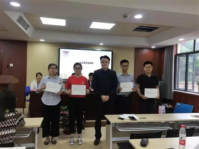 魏梁律师介绍瀛东律师事务所,瀛东律师事务所是一家年轻但发展很快的律所,自2014年12月12号起发展到现在,已拥有律师上百位,在全国分所多达68家。财大法学院培养的是复合型人才,瀛东律师事务所以互联网金融为基础开展相关法律业务,这与财大法学院相契合。另外瀛东律师事务所对年轻人的培养领先于其他的律所,每周会有两到三次的相关培训,因此,欢迎各位同学的加入、共事。之后,魏梁律师为瀛东奖学金获得者颁发证书。