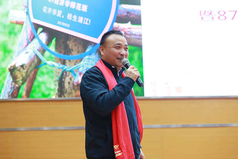 投资2班的凌泓校友代表1987级全体校友发表了返校感言。他首先讲述了87级校友桂花林从无到有的捐赠故事,对积极参与捐赠的众多校友表示感谢。随后他分享了毕业后二十多年的人生感悟,回忆了当年同学们的校园轶事,借此传递了87级校友们对母校多来年的浓浓思念与祝福。