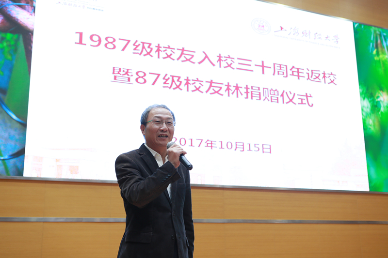 10月15日上午,1987级校友入校三十周年返校活动暨87级校友桂花林捐赠仪在我校武川路校区创业中心报告厅举行。来自祖国各地的两百多位87级校友不畏风雨赶回学校参加返校活动,共同为母校百年华诞送上祝福。上海财经大学副校长、教育发展基金会理事长方华,合作发展处处长、基金会秘书长陈红梅,各学院的领导、老师悉数出席。捐赠仪式由87级工业经济班校友张屹华主持。
