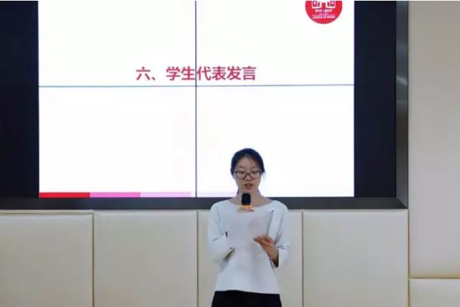 黄莎老师致欢迎辞,她首先简要介绍了赢火虫学生干部奖学金,并代表会计学院对赢火虫信息科技(上海)股份有限公司、学校合作发展处、学校教育基金会表示感谢。她指出上海财经大学会计学院在人才培养和学科建设方面居于国内领先,而赢火虫信息科技(上海)股份有限公司在推动经济发展与承担社会责任方面的贡献更是有目共睹,学院长远发展离不开社会各界的关心和支持,此次捐赠,必将加快学院创建世界一流学科的步伐。