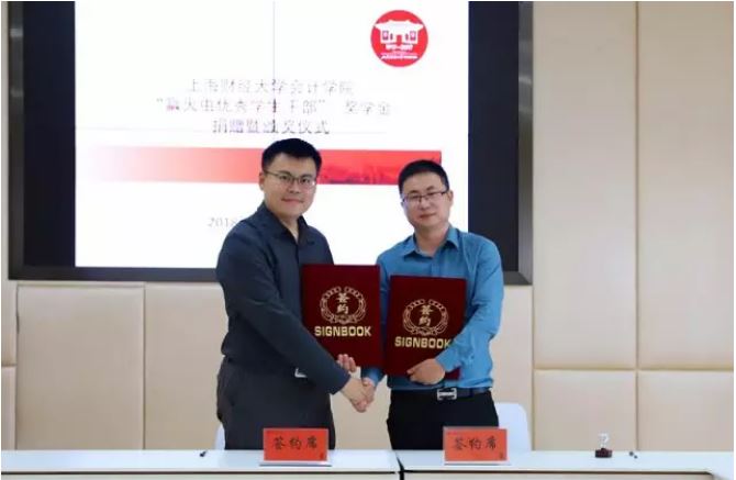 在与会嘉宾的见证下,校合作发展处副处长、基金会副秘书长王峰与赢火虫信息科技(上海)股份有限公司创始合伙人吴要康先生签署捐赠协议。