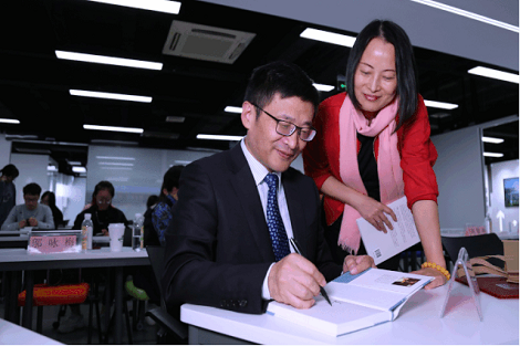 现场,公共经济与管理学院校友会会长,80级财政专业周伟明校友发表了精彩的点评:“无巧不成书,两位写书的都是上财的校友,都是上财公管的校友,毕业还都留校,书还都在同一个出版社上海文艺出版社出版。看来上财公管都是读书人啊!”随后,周伟明校友介绍了公管校友会读书会微信群,2018年起联合各地方校友会组织举办了“行万里路读万卷书”读书分享活动,计划10次,估计时间要横跨四年,已走过福建、安徽、河南、广西、宁夏、台湾、无锡、湖南、陕西等9个地方。未来也将把大家的读书分享心得汇集成书,届时也捐赠部分给校图书馆。公共经济与管理学院校友会秘书长、公管校友会读书会微信群的负责人,88级财政系财政学专业的邬咏梅校友也参加了此次活动,并在互动环节与两位作者讨论了著作创作和未来的计划。