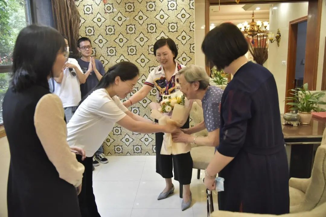 最后,经济学院博士生代表李艳向程桂芳教授送上了精心准备的鲜花,并鞠躬表示深深的感谢。她表示,在聆听了程桂芳教授的感人事迹后,自己备受鼓舞和激励,在建党百年的特殊日子里,自己作为一名预备党员,看到了老一辈共产党人的动人光辉和崇高品格,也感受到了党组织的温暖和高尚,未来将从中汲取奋进力量,立志报效党和祖国。