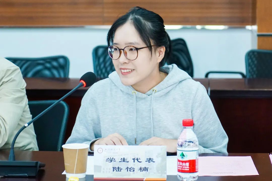 听完老师和校友们的发言后,公管学院18级财政专业在校学生代表陆怡楠发表感想,她提到公管学院老教师们的一支粉笔,两袖微尘,三尺讲台,四季耕耘,就如同张桂梅老师一样,不断传承、践行着自己神圣的使命,影响着一代又一代公管学子发奋学习、开拓进取。她深刻体会到了校友们离开母校仍不忘记回馈母校的反哺精神,并祝愿老师们桃李芬芳、身体健康,祝愿公管校友会越来越好。