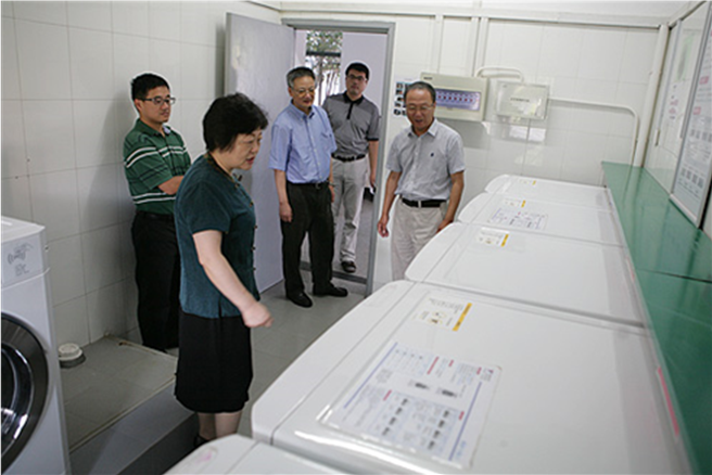 樊丽明校长、刘永章副书记、方华副校长视察洗衣和烘干设备安装情况
