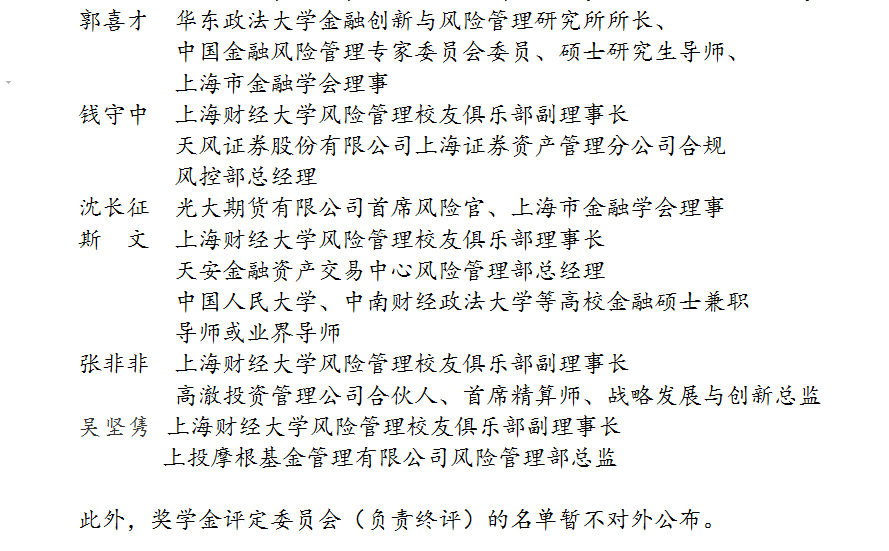 附:奖学金提名委员会成员(按姓氏的拼音排序,均为上财校友并负责初评)