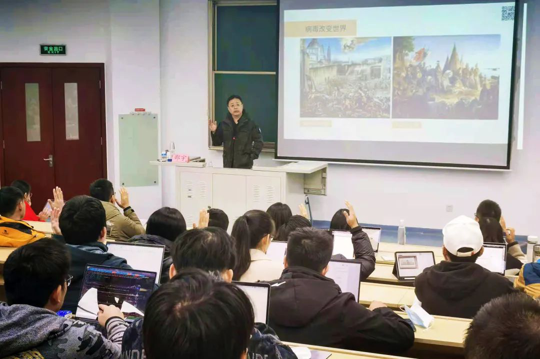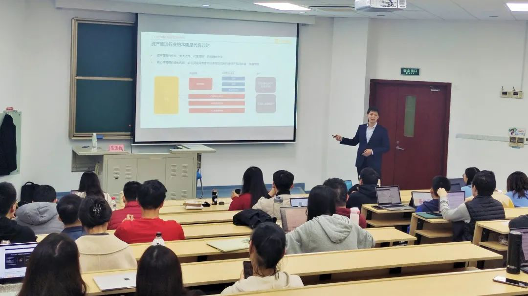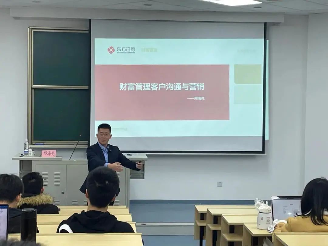 朱鸣雄副书记对徐海宁等东方证券的各位老师表示感谢,对课程开设情况表示肯定。他强调,要“讲好上财故事”,以课程为抓手,与专业高度吻合,体现上财的人才培养理念。他用马寅初、孙冶方等上财先贤举例,说明“走出去,请进来”和“理论联系实际”是上财一贯的传统。课程内在讲文化传承,课程外在就要做“实”。从课程反馈来看,东方证券的老师们以个人精神魅力感染到学生,起到了榜样和引领作用,也是很好的课程思政。他以经济学原理的“乘数效应”告诫同学们,找好属于自己的榜样,“不打折扣”地对待学习和工作,每次“超出一点点”,长期坚持就会增量可观。最后,他希望借此机会深化校企联动人才培养,将课程打造为金融学院的品牌课程,并期待未来双方合作更加密切。