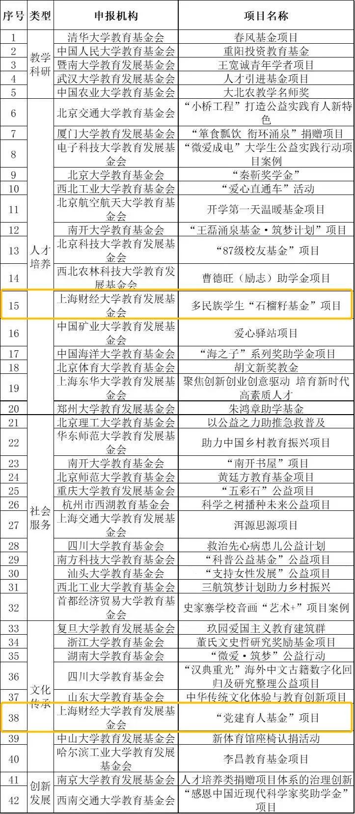 2022年9月30日中国高校基金会优秀公益项目案例(2022)入围名单正式发布上海财经大学教育发展基金会【多民族学生“石榴籽基金”项目】【“党建育人基金”项目】双双上榜!