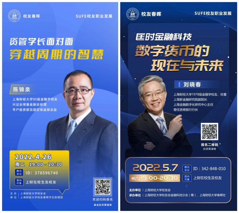 支部持续推进“校友导师领航计划”,协同各学院完成190位校友导师和400多位在校生结对,为学生释疑解惑,助力学生成长成才。先后邀请甘卓霞、杨钦、陈锦泉、付娟、刘晓春、梁国勇、吴锋、崔丽丽等校友和老师担任主讲人,举办线上“校友春晖系列讲座”和“公益思享会”,累计有5000余名在校生积极参与。举办“传媒产教训练营”为同学们带来线上传媒技能分享,丰富同学们的课余生活。协助举办“上海财经大学2022年校董校友企业线上专场招聘会”,助力应届毕业生高质量就业。推出“读好书 铭初心 品经典 阅青春——2022年上财校董推荐阅读书目”活动,培养学生求知爱读、求知好读、求知善读的读书习惯。